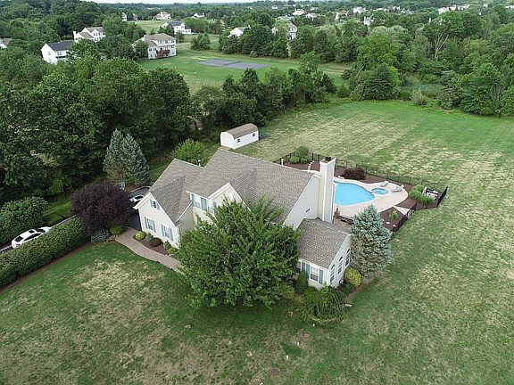 This spacious, 3,100 square foot, 5-bedroom, 3.5 bath home offers ample comfort, privacy, multiple work-from-home options, and plenty of fun for all family members. Built on 3 acres of land (2 cleared and 1 preserved conservation property), this house’s first floor has a wide-open kitchen and family room, a home office/den, formal dining room, formal living room, half bath, and large conservatory with a cathedral ceiling. Off the back of the kitchen is a 420 square foot deck that overlooks the entire back yard. On the 2nd floor of the house is the master bedroom with cathedral ceiling, walk-in closet, and master bath, along with three other bedrooms and another full bathroom. The 1st and 2nd floors have hardwood flooring throughout, as well as decorative crown and chair moldings in most rooms. A finished (walkout) basement provides an additional 1200 square feet of living space with home theatre area, pool table, wet bar, the 5th bedroom, full bath, and plenty of storage space in the unfinished portion of the basement. The walkout basement leads to a 600 square foot paver patio that includes an outdoor bar, outdoor TV hook up, and plenty of space for all your entertainment needs. The patio seamlessly connects to the decking that surrounds the 650 square foot in-ground, gunite swimming pool and spa. Outside of the fenced in pool and patio area is the back yard that consists of over 1.5 acres of cleared space for all your family’s fun and outdoor activities. Also included in the backyard is a 300 square foot storage shed and storage space. $799,000, or best offer...