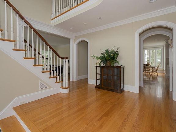 Beautifully sited in a desirable neighborhood with a stately presence and circular driveway, this young Colonial delivers stunning design and quality construction. Custom details welcome you into the elegant two-story foyer. Entertain with style in the exquisite formal living room with a fireplace and gleaming hardwood floors. The gourmet kitchen is guaranteed to inspire your inner chef with an open floor plan, stainless steel appliances, granite countertops, wet bar, an oversized breakfast bar island and dining area flowing seamlessly to the open plan family room with cathedral ceiling and fireplace. Enjoy outdoor living at its finest with a bluestone patio, farmer's porch and sunroom. Retreat to the private master suite with a fireplace, walk-in closet and luxurious marble bathroom with dual vanities, beautifully tiled shower and spa tub. Large family bedrooms offer en suite full bathrooms. Huge recreation room and home gym on the finished lower level. Steps to Diamond Middle School.