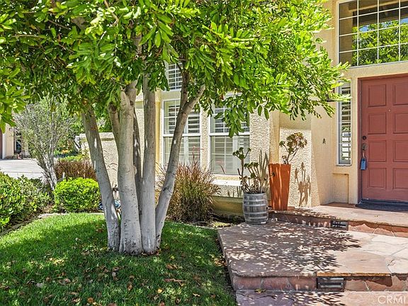 This nicely remodeled 3-bedroom home in Foothill Ranch is a perfect place to call home. Quiet interior location on a Cul-de-sac street. Remodeled Gourmet Kitchen with new Euro style wood faced bottom cabinets and white upper cabinets, Quartz countertops, a subway tiled backsplash, chrome designer faucet, large stainless sink and white appliances for a modern clean look. Recessed and under cabinet lighting further enhances the space. The living room offers a warm ambiance with a gas/wood burning fireplace and tall vaulted ceilings, which maximize natural light and create a sense of height and openness. Most windows have quality interior shutters. The first floor is finished with tile set on diagonal pattern. The dining area opens with French doors with side-lights and an additional patio door promoting an indoor-outdoor flow. Upstairs features 3 bedrooms, The primary suite has double door entry, walk in closet and bath includes a dual sink vanity and a large soaking tub. The 2nd bathroom is finished with new vanity, quartz counters, new mirrors, and light fixture. Downstairs power room also has granite counter. The unique shaped lot offers a large side yard with plenty of grass and a patio area with a covered gazebo and fully fenced with stucco block wall and vinyl fence. The garage floor has an epoxy finished and plenty of storage shelving. Community amenities include community park with pool, spa, tennis courts. Plenty of biking and hiking trails for your pleasure. Award winning schools and a public library are all close by.