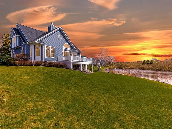 Immerse yourself in the captivating ambiance of Hawkins Glen, where every evening offers breathtaking sunsets and the joys of waterfront living. Set within a community of 42 single-family homes encircling a vast 17-acre pond, ideal for serene fishing and nature walks, Hawkins Glen represents the epitome of homeownership excellence. Managed by a diligent HOA, residents enjoy access to a plethora of amenities, including meticulously tended landscaping, snow removal, trash collection, and so much more. Nestled amid publicly maintained roads, with convenient access to public water, a pool, clubhouse, and scenic walking trails, Hawkins Glen welcomes residents of all ages w/out restriction. Outside, lush landscaping envelops the home, providing a private retreat on the patio and deck where you can savor the year-round charm of Hawkins Pond. Inside, hardwood floors adorn the kitchen, dining room, and living room, while the kitchen boasts exquisite cabinetry and granite counters. A gracious foyer leads to the expansive first-floor primary bedroom retreat, complete with a tiled ensuite bath. The finished lower level, featuring a fireplace and additional cozy living space leading to a second patio beneath the deck, offers even more room for relaxation and entertainment. Residents can indulge in community amenities, including clubhouse with an inviting in-ground pool, as well as picturesque walking trails encircling the pond.