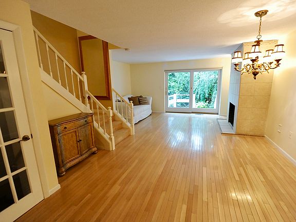 Beautifully appointed and well maintained 2 bedroom 1.5 bath townhouse with gleaming hardwood floors in 1st floor living / dining area with fireplace, sliders to a private deck, and a nicely sized kitchen. First floor also has a bathroom as well. Stairs lead to carpeted second floor with 2 nicely sized bedrooms, large closets, and a full bath with new floors and fixtures. Finished basement has adds 500 sq. feet to total unit sq. footage, offers flexible additional living space, tons of storage, washer / dryer that stays with unit and exit to back patio. Unit is close to the clubhouse with a swimming pool, sauna room & tennis court. Complex is located close to shopping, the commuter rail, and beaches. Easy to show
