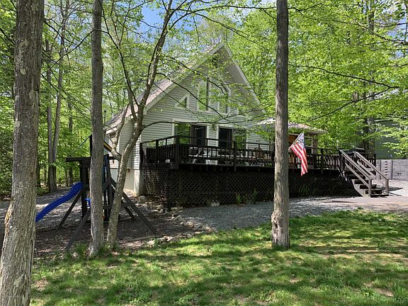 Completely remodeled beautiful open floor plan. Great curb appeal. Home is light and bright. Cozy family room with roaring coal stove. Lots of space for visitors to spread out while entertaining. Situated among the trees and next to a soothing, babbling brook. Large storage shed. North Pocono SD. Storage galore. Enjoy the pool, 9 hole golf course, b-ball & tennis courts in Thornhurst CC dev.