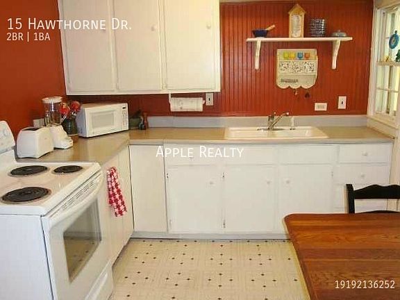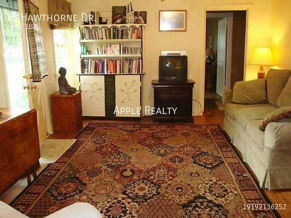 2 BR, 1 bath - 920 square feet. LR, kitchen with stove, refrigerator, countertop dishwasher, large utility room with washer/dryer connections, gas heat, central air, hardwood, tile and vinyl floors, screen porch, large back yard. Convenient N. Durham location off Cole Mill Rd. Note: Pictures are from several years ago and wall colors are not the same. Wall colors are all gray currently.