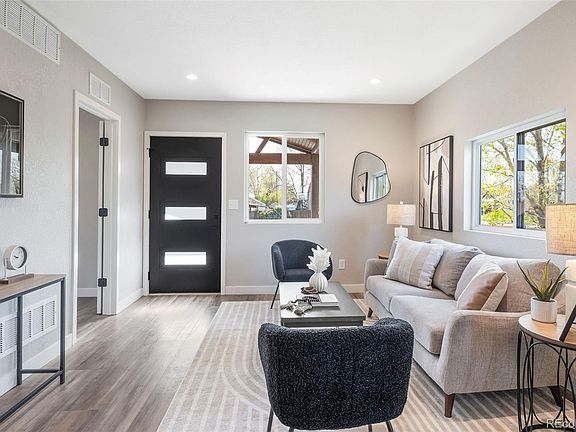 Beautifully renovated home in Barnum! This charming West Denver bungalow has been completely redone from top to bottom. You'll find the Primary Bedroom with Ensuite plus an additional bedroom and 1/2 bath all on the main level! Enjoy the brand new kitchen with quartz countertops, new cabinets and stainless appliances, plus an island and separate dining area! Head downstairs and you'll find an open bonus room, 2 additional bedrooms, a lovely full bath, and mechanical/laundry room. Other updates include new luxury vinyl plank flooring throughout, new carpet in basement, new doors and windows, new interior & exterior paint, all new kitchen and baths, new electrical panel, new plumbing throughout, new furnace, new tankless water heater, new central air, new roof, new sewer line, new privacy fence, new sprinkler system in front and back yards with new sod. Enjoy the spacious, fully fenced, landscaped backyard and 2 car detached garage! Located just 4 minutes from 6th avenue entrance, 10 minute drive to Downtown, and 8 minute walk to Barnum Park and Rec Center.