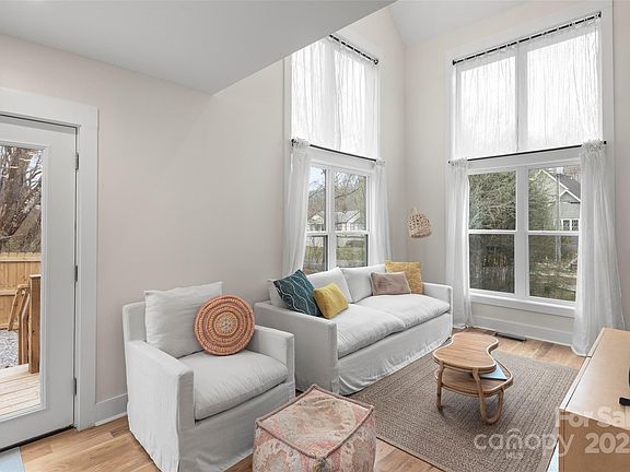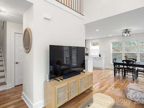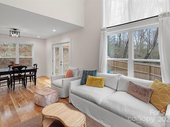 Nestled among the trees at the back of the property, this light-filled, 1.5-yr-old home offers the perfect balance of privacy, convenience, and modern living. A two-story living room flows seamlessly into the open kitchen and dining area. The main level includes a secluded primary suite with an en-suite bath featuring a walk-in shower and soaker tub. A main level laundry room and half-bath add extra convenience. Hardwood floors, quartz counters, a large kitchen island, and tiled bathrooms elevate the design. Outside, the home boasts hardboard siding, a covered front porch, and an open side deck, perfect for outdoor living. The private side and backyard, fenced and featuring a fire pit, is ideal for both entertaining and relaxation. Located 2 miles from west Asheville's vibrant Haywood Rd. and 5 miles from downtown, with easy access to interstates and a nearby grocery store, this home offers the best of both seclusion and convenience.
