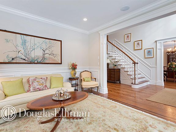 Stunning Quaker Ridge Colonial on level .31 of an acre. Located in a highly sought after neighborhood this home was built by a well regarded local builder known for his quality and craftsmanship. This distinctive 6 BR, 5.1 bath home has a wonderful open layout offering great space and light. Chef's kitchen featuring high end stainless steel appliances. First floor features great room, with gas fireplace, sliding glass doors to patio, a wet bar, large pantry, mudroom with cubbies, bedroom/bath, 2 car garage. Master bedroom suite features his/her walk in California Closets, spa like bath. Custom molding throughout. Gorgeous hardwood floors throughout where you are welcomed with a herringbone entry. Laundry on the 2nd floor, walk up attic. Lutron electrical system, spray foam insulation, Kohler back up generator, whole house Savant audio system. Walk out lower level with spacious playroom. Large, level backyard, located within walking distance to the elementary school.