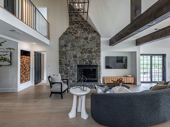 Contemporary elegance on one of Sharon's most prestigious addresses. A classic pea stone driveway leads to this newly renovated and glamorous 3 BDR/3+ Bath country home in a stunning natural setting with interiors designed by the NY-based firm Majordomo Lifestyle Architecture. Sleek sophistication abounds with gracious vaulted ceilings in the living room, anchored by a striking stone fireplace. The living room flows seamlessly into an expanded sunroom bathed in natural light - perfect for intimate dinners and grand entertaining with access to the patio. The updated eat-in kitchen serves as the heart of this modern masterpiece, with top of the line appliances and ample storage. Luxurious accommodations include an enlarged en-suite Primary BDR with fireplace on the main floor and access to the patio, and 2 spacious en suite bedrooms upstairs. Every space has been thoughtfully renovated to blend contemporary comfort with timeless charm. 2-car detached garage/barn offers extraordinary storage/work/studio spaces. Herrick Road places you at one of the finest locations in Sharon known for its exceptional estates and natural beauty. This home is a lifestyle statement in one of Litchfield County's most desirable communities. Enjoy this idyllic setting where cattails whisper in the breeze and privacy reigns supreme. Private schools nearby: (Hotchkiss, Kent School, Salisbury School, Millbrook School), skiing at Mohawk and Catamount, Sharon Playhouse, and Audubon. 2 hours to NYC.