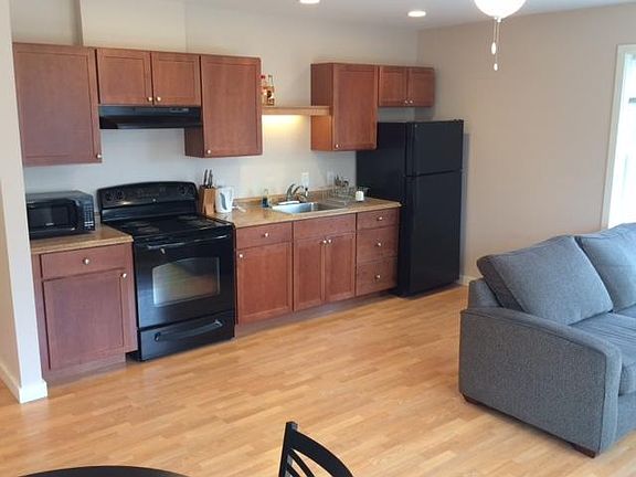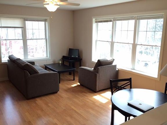 This 6 unit building was constructed in 2012 with an eye for energy efficiency! The roof is blanketed in solar panels for electric and hot water. Heat is included, and hot water is pre-heated by the solar panels, so is very little cost to tenants. This is one of 6 units in the building. Features included laminate floors, large open combo kitchen/living area, large closets make this your next place to call home! Short walk to Amherst Center and UMass, bus stop just a few steps away. Stacked washer/dryer in unit a big plus! Please note this property is located adjacent to an active rail line, both passenger and freight. Trains run a few times daily. Sorry no undergrads, strict no pets (tanked pets negotiable). Strict no smoking policy anywhere on property including outside on grounds. Firm limit of one parking space, no other off street parking available. Photos are representative of unit and may not be of exact unit. Brokerage fee of $675 due at time of application. Owner pays: heat, snow, water/sewer, trash, lawn care