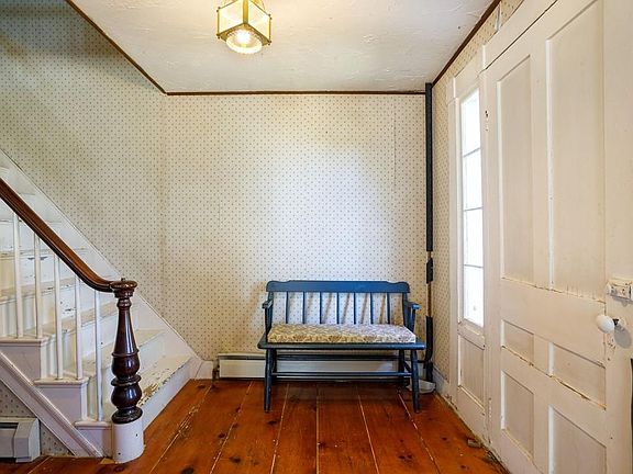 This antique home built in 1841 is full of character and charm! The dining room features a wood stove to keep you warm in the upcoming cold months, an old beehive oven that can be brought back to life with minor touches, and beautifully beamed ceilings. The living room is large and open with a bay window that lets in an abundance of natural light. Upstairs houses 3 bedrooms with ceiling fans and ample closet space as well as two bonus rooms that have potential to be used as an office, storage, or a playroom. The large backyard is well suited for playing, relaxing, or fulfilling your gardening needs. Located in a very quiet neighborhood but only seconds away from the center of Hubbardston. It's time for you to add to the long history of this home!