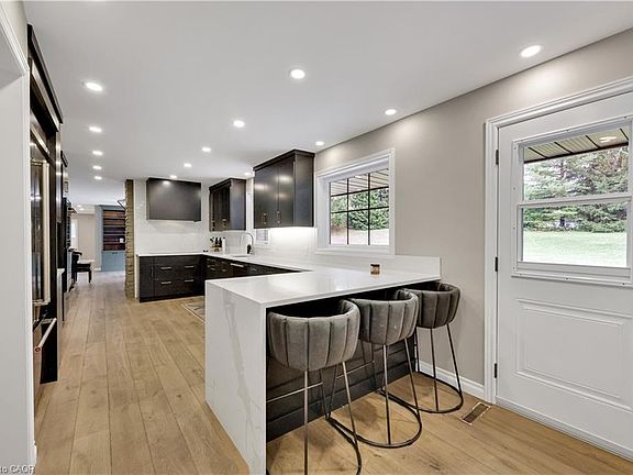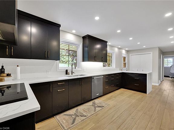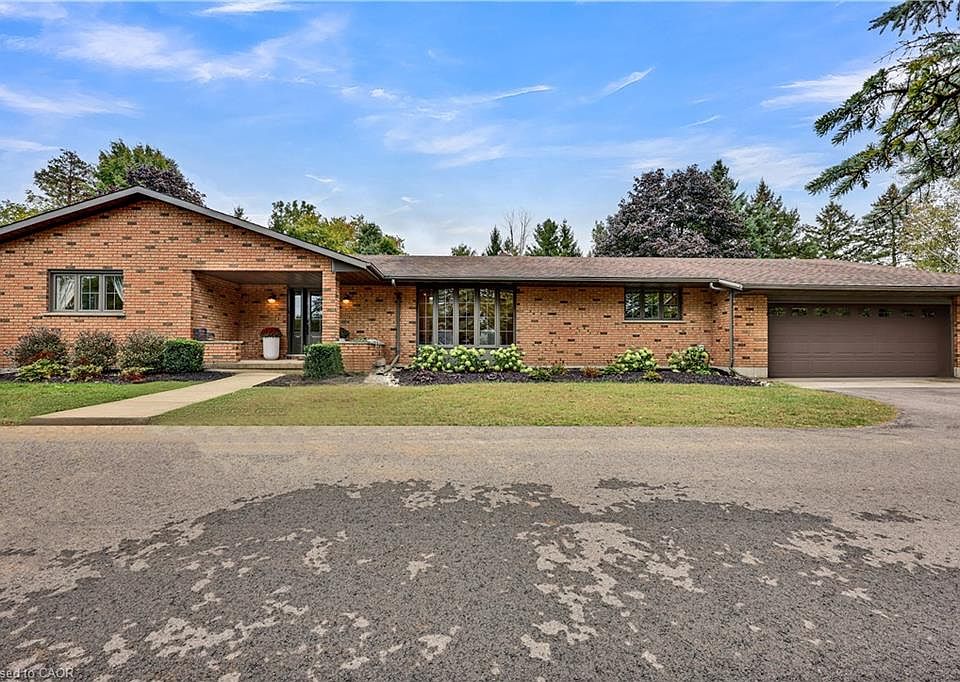 Discover the perfect country retreat in this charming bungalow, set on a beautifully landscaped 1.2-acre lot adorned with mature trees. This home exudes modern elegance, featuring an open-concept entertaining space that flows seamlessly with a stunning built-in servery and stylish bar cabinets, connecting the dining area to a well-appointed kitchen that is sure to impress. On the main floor, you'll find three generous bedrooms, including a luxurious primary suite complete with a private three-piece ensuite. The expansive kitchen is equipped with ample cabinetry and high-quality built-in appliances, making meal preparation a delight. Conveniently located off the kitchen, the main floor laundry area and an additional three-piece bathroom add to the home's practicality. The fully finished lower level offers an impressive recreation room and games area equipped with a built-in wet bar, ideal for hosting friends and family. This space also features a dedicated office area and two bonus rooms perfect for hobbies or an invigorating workout.The attached double garage provides spacious storage and a convenient interior entrance, ensuring ease of access. Step outside to experience breathtaking views framed by lush, mature trees, an inviting interlocking stone patio, and an exceptionally large paved driveway that enhances your home's curb appeal. This lovely bungalow is more than just a home; it's a serene lifestyle waiting for you. Don’t miss your chance to make this dream property your own!