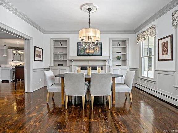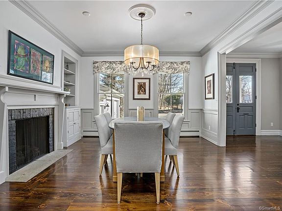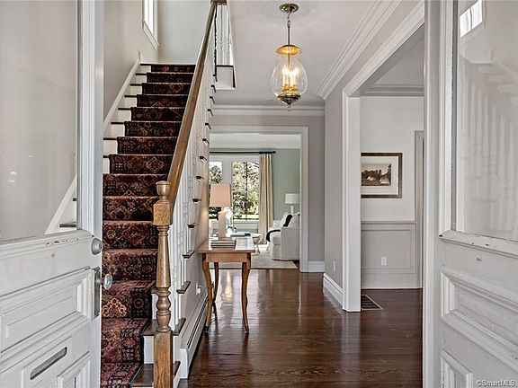 Built in 2007 and located in Greens Farms, this striking Italianate Victorian reproduction features tall windows, overhanging eaves, wraparound porch, and graceful, high-ceilinged rooms. A double front door leads to a large and welcoming foyer, exquisite dining room with built-ins and gas fireplace, and formal living room with garden views. The open floorplan culminates in a chef's eat-in kitchen, adjacent family room with wood-burning fireplace, and covered porch that functions as an outdoor room. Upstairs, the master bedroom has a vaulted ceiling, his & her closets, and an en suite bathroom with double sinks, separate tub, and tiled shower. Of the three additional bedrooms, one is en suite, while the others share a Jack & Jill bathroom. The third floor includes a walk-in storage area plus a private space in the cupola that is perfect for a home office. Other features include a spacious mudroom with walk-in closet and access to the two-car garage, a back staircase, and a finished lower level with living, play, work, and storage areas. The professionally landscaped and very private property is flat and ready for outdoor fun, followed by dining on the bluestone terrace or covered porch. This move-in ready home is five minutes from the Greens Farms train station and within walking distance of stores. Westports spectacular amenities and top-rated schools are just minutes away. All of this plus natural gas, city water, and sewer. This is not a cookie-cutter house. Room for pool. Additional features: Gas Grill hookup, Fenced side yard for pets; 3 heating zones; 2 AC zones, speaker wires in ceiling