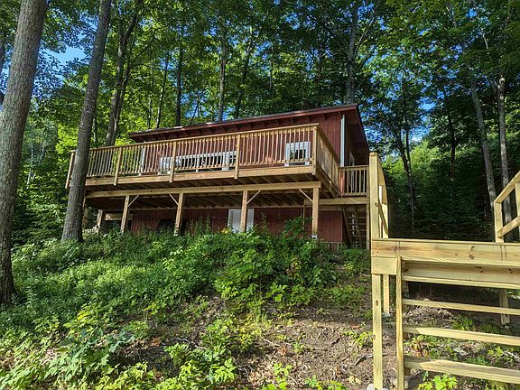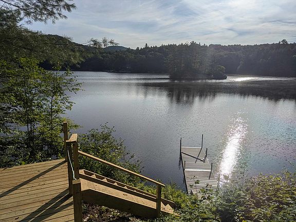Enjoy 175' of prime water frontage on clean and highly sought after Franklin Pierce Lake. This charming two bedroom ranch with new updated kitchen has a large light and bright living room open area. Enjoy your mornings and evenings on the huge new deck with a spectacular view of the lake. The newly built stairs to the water make fishing from your private dock a joy. Franklin Pierce Lake is over 2.5 miles long and 480 acres allowing for all types of recreational activities including water skiing, pontoon boating, canoeing, kayaking, etc. The lake is also home to small mouth bass and pickerel if fishing is an activity you enjoy. It is move in ready for your weekend getaway. It has the potential for expansion being on .74 acres and having a 3 bedroom septic. This gem has wood stove in basement that needs to be connected, propane stove to get the chill out on fall days, new windows and is move in ready. Has walk out basement for storage so don't wait to have a look. The property has been used year round in the past but not in the last few years. It's lake living at its best.