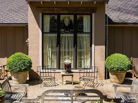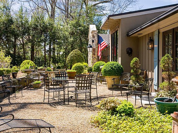 Beautiful landscaping and graceful living flourish in this 1957 Henry Gaines designed home. Main home offers flowing one-level living perfect for entertaining inside and out. Updated with a primary bedroom suite addition in 2018, the main home features 3 spacious bedrooms with ensuite baths. Current owners have worked meticulously creating an outdoor oasis featuring private front and rear terraces perfect for outdoor dining/entertaining in the mature gardens and landscape. Multiple additional updates include the enclosure of the original front porch to create an English pine-paneled gallery/all-season room, perfect for many uses. The 2013 detached guest house/garage features a full kitchen, living area, bedroom, and bath. This space could be used as separate apartment or home office. The current designer owned family have created a European inspired retreat that allows you to step away from the world and live the good life.