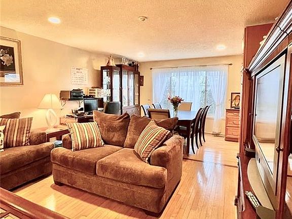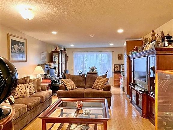 Eagle Ridge townhome, lower-level end unit. Two bedroom and 1.5 bath; primary room remodeled and converted into a large bedroom with three closets and private bath. Unit features recessed lighting and hardwood floors on main level. Kitchen is updated with stainless steel appliances (microwave, range, refrigerator and dishwasher), maple wood cabinets, breakfast bar and granite countertops. Slider doors in kitchen lead to an expanded deck with ample space for outdoor enjoyment. Unit has washer/dryer and central air. Lower level features den, mechanical room and walk in closet/storage area. Slider doors lead to additional outdoor patio area. Private garage with marble tiled flooring and driveway. Cul-de-sac has additional guest parking. Complex amenities feature clubhouse, recreational areas, and seasonal pool access. Close to transportation, shopping and restaurants.
