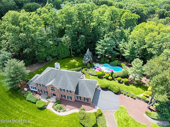 paneled refrigerator. The true show stopper is the spacious eat-in area beneath the turret ceiling and wall of windows overlooking the beautiful grounds. Enjoy convenient French Door access to the back yard for seamless indoor/outdoor entertaining. The Living Level also enjoys a private office conveniently appointed near a full bath offering versatility for flex/guest space. The Living Level boosts 10 ft ceilings. The Bedroom Level features the Primary Suite with dual walk-in closet & Primary Bath complete with dual sinks, Jacuzzi & walk-in shower. 3 additional bedrooms with an en-suite/hall full bathroom complete this level. Lower Level offers tremendous unfinished storage space. The coveted attached 3 car garage also offers overhead storage space. Privacy abounds in your backyard retreat with beautifully designed Sylvan gunite pool & waterfall surrounded by inviting patios. Don't miss the opportunity to "open happiness" in your new home! Conveniently located appx 40 miles from NYC with easy access to NYC transportation via NJ Transit Rail, Academy Bus from PNC and Seastreak Ferry, GSP exits 114/116/117, iconic Bell Works, MSK, beautiful Holmdel, Philips and Thompson parks & Jersey Shore beaches.