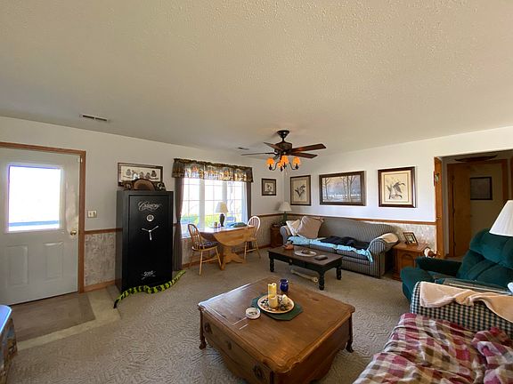 Remarkable split three bedroom, two bath home located on 4.1 +/- acres with an oversized two car garage (with space enough to fit four cars). This homes open living area leads into the kitchen/dining space with brick pad for a wood or pellet stove hookup overlooking the rear patio and fire pit. On the acreage, you will find a 24 x 30 insulated shop building with propane heat, 6' concrete floor, 220 amp, with 2 x 6 construction, 13' sidewalls and a 10 x 10 automatic overhead door. Additionally there is a cedar storage shed, a 12 x 20 John Deere building with a 9 x 7 overhead door and a 14 x 36 wood shop with heater along with a wet weather pond/creek along the front of the land leading to the private drive to the home.