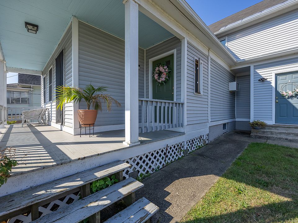 **5 UNIT POTENTIAL** This rare and versatile property offers exceptional income potential, featuring a two-family home plus an expansive contractor's garage complex - with the opportunity to create up to five income-producing units. The main home offers two spacious 2-bedroom, 1-bath apartments, perfect for owner-occupants seeking income or investors expanding their portfolio. The first-floor unit boasts bright living spaces and ample storage, while the second-floor unit includes access to a walk-up attic for storage or future expansion. A full basement adds laundry and workshop areas, while a charming front porch and fenced garden provide outdoor appeal. The standout feature is the large detached outbuilding, ideal for contractors or tradespeople, with: * A massive workshop with an oversized overhead door * Private office, conference/flex space, and full bath upstairs * Separate electric and hot water heater * A third garage bay with a half bath and a workout area With its layout and utilities, these structures offer potential to add 3 accessory units for a total of 5 rentable spaces. Conveniently located near local shops, restaurants, and major routes, this property blends income potential, functionality, and lifestyle.