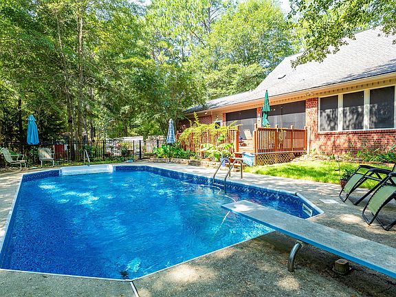A very private and exclusive neighborhood off Hwy 24 with only six houses located less than five minutes from Oak Grove schools, Hwy 11, and Hwy 589. This classic, southern colonial, brick home built in 1985 is situated perfectly on a large wooded lot with abundant landscaping. The IN GROUND POOL with aluminum fence is behind the home for privacy and enjoyment. The three bedroom, two bath home is move in ready with an updated kitchen and granite countertops. Primary bedroom down and two bedrooms up. The sunroom off the back provides beautiful views of the pool area and wooded landscape. There is a new HVAC, some upgraded flooring, a working fireplace, and an overall cozy historical ambiance.