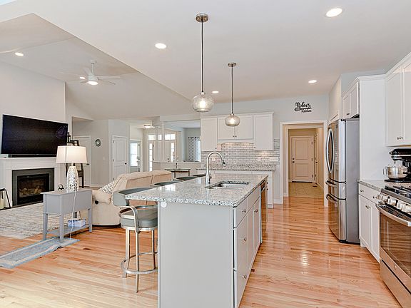 Welcome home to your better than new ranch style home sitting on nearly an acre. Located in the desirable Weatherstone Estates, this beautiful 3 year old property offers single level living at its best. The kitchen boasts stainless appliances, ample cabinet space, and a convenient breakfast bar for quick meals. The countertops are made of sleek granite, providing both functionality and style. The kitchen also features a pantry closet for additional storage, under-cabinet lights, upgraded backsplash and new pendant lighting. The expansive main floor has 2 bedrooms, 2 full bathrooms, an office with French doors, an oversized sun room flooded with natural light, an impressive dining room and living room with vaulted ceiling and gas fireplace. The large master bedroom has a generous walk-in closet and a gorgeous en-suite bathroom. Need more space? The lower level is wide open and ready for your expansion plans.The outdoor area is just as impressive. Enjoy morning coffee on the deck or relax after dinner on the beautiful stone patio area with a built in fire pit. The Reeds Ferry shed large will hold all of your outdoor and garden equipment. There is even a fenced in doggy play area! Bonus: hard wired generator for your peace of mind. Open houses Saturday and Sunday or book your private showing today.