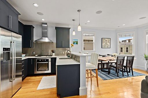 Welcome to Polish Triangle! This conveniently located penthouse unit has three bedrooms and two full baths with a bonus room and private roof deck. Tastefully updated to include all of today's sought-after amenities and space! Quietly situated on the top floor of a three-unit condo building it has an abundance of natural light with a 240 sq ft outdoor oasis! Features include gas cooking and gas fireplace with custom builtins in living room, in-unit laundry, surround sound throughout, deeded parking space and a 11'x12' dedicated storage unit in lower level (or use it as a home gym!). The king Master suite has a spa-like bath, followed by a queen-size second bedroom and a third bed or home office. On the top level find a bonus room big enough for another home office or keep as the "hen house" with wet bar and wine fridge for luxe outdoor living! Enjoy city sky line views and walk to transportation, shopping, Carson beach and more!