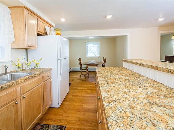 Welcome home! This L shaped ranch with spacious floor plan has been completely updated throughout! Brand new kitchen with center island with seating, large built in pantry, lots of lighting throughout, appliances included, hardwood flooring which opens to dining area. Bathroom has been tastefully remodeled, refinished hardwood flooring throughout ( excluding bath) large 20x13 living room with classic built in corner hutch. Interior and exterior of home has been freshly painted. Brand new energy efficient windows, new baseboards for newer furnace. Public water and sewers. Electrical has been updated throughout complete with new main electrical service panel. Lower level has laundry area which includes washer, dryer and sink, workshop, closets, and plenty of space for future finished room with walkout to serene backyard area perfect for entertaining! Conveniently located to nearby shops and parks. Perfect for downsizing or just starting out!