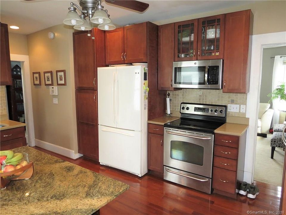 Incredible Price for this Charming Old Wethersfield Colonial with 9Ft Ceilings, Crown Molding, Brazilian Cherry Floors, New Gas Furnace & New Central Air, New Roof & New Windows, New Silestone Eat in Kitchen with Granite Island, Tile Backsplash & Recessed Lighting, Spacious Living Room & Dining Room(being used as a Family Room) on 1st Floor, Hardwood Under Carpet, Updated Baths, 3 Bedrooms Plus Fully Finished Attic Space for Possible 4 Bedroom or Playroom, First Floor Laundry, Remodeled 3 Season Back Porch Leads to a Beautiful Deck & Fully Fenced Level Yard!! Walk to Parks, Cove, Green, Relax on the Lovely Front Porch Overlooking this Quaint Quiet Neighborhood!!!