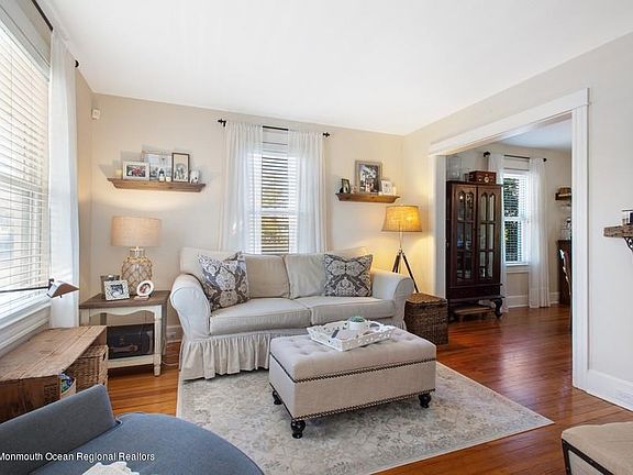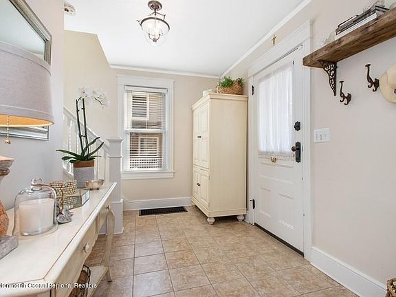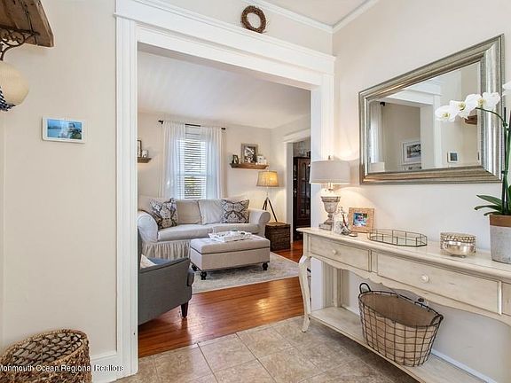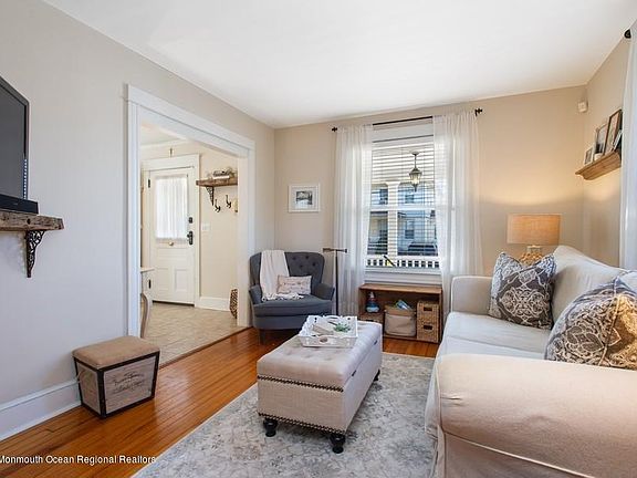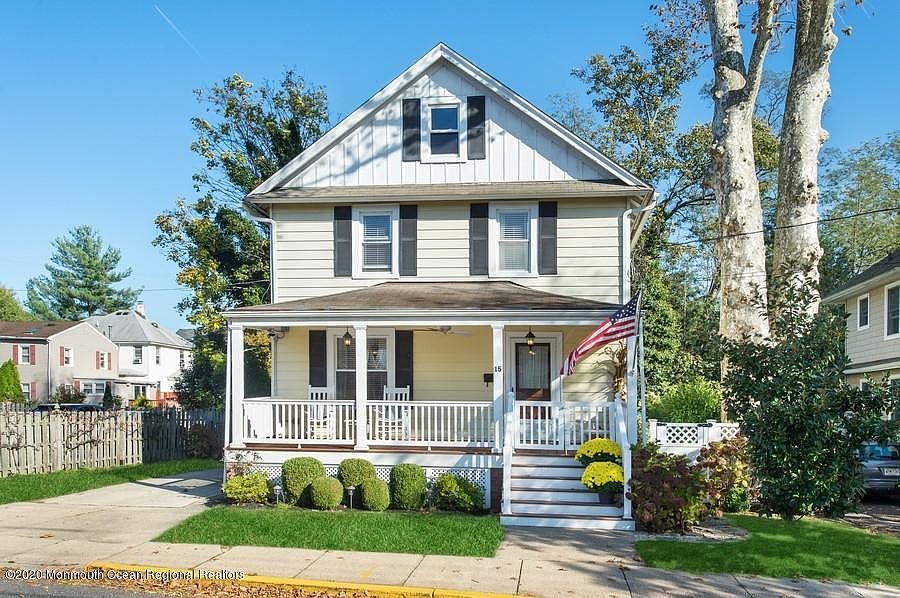 LOOK NO FURTHER! You're 1 block away from downtown Red Bank. Enjoy downtown living in a quiet setting in this comfortable 3 bedroom, 1.5 bathroom Colonial, offering charm and original details, as well as modern updates. You'll spend your mornings on the rocking chair front porch with coffee and the evenings watching the sunset over downtown Red Bank. You'll be less than a 5 minute walk to some of the best restaurants and shops in New Jersey.Enter through the large foyer, which flows into a bright family room and dining room, both with original hardwood floors, molding and high ceilings. The kitchen has granite counters, 42 inch maple cabinets and stainless steel appliances.
