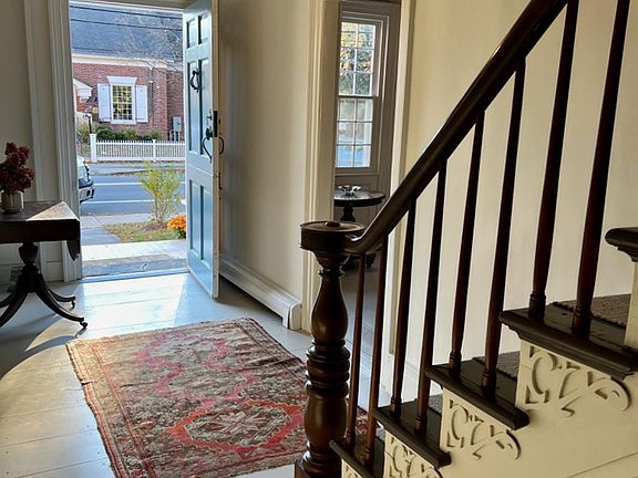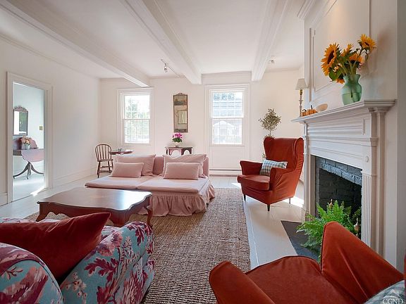 This early gambrel roofed Dutch house is an 18th century gem in one of the prettiest villages in Columbia County. Kinderhook was one of the earliest settlements and one of the wealthiest, with so much exquisite architecture, both domestic and commercial, reflecting the style and substance of the community. The hand-made clay brick facade of this house is expressive of its integrity and importance and is as solid and refined as it is elegant; this is a structure built to last the centuries. The wide entrance hall features one of the loveliest staircases we have seen and is just one of the many features that make this property so desirable. Lovely fireplaces grace many of the rooms both on the main level as well as in some of the upstairs bedrooms. The proportions of the reception rooms are large and graceful, and the modern kitchen is well designed and comfortable with all new appliances. The original kitchen, now the 'Snuggery', is nearly unchanged from 1730 and is a cozy retreat centered by the huge fireplace and beehive oven. A small roomlined with glass fronted book shelvesconnects the snuggery to the rear parlor, the powder room and an independent laundry room. The gracious mainstair case rises to a wide second floor landing leading to four bedrooms two full bathrooms and an office. An additional room could serve as another smaller office or nursery bedroom. Steeped in history, this house has been updated for modern living with out compromising its architectural integrity and historic sense of place. A large lawn can accommodate a pool if need be and the period carriage house is fully usable as a garage and a pool pavilion.