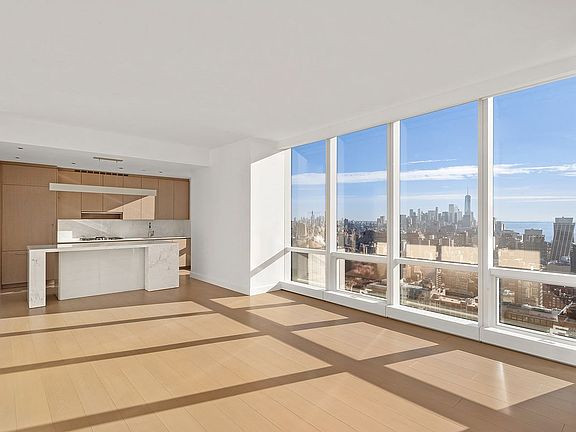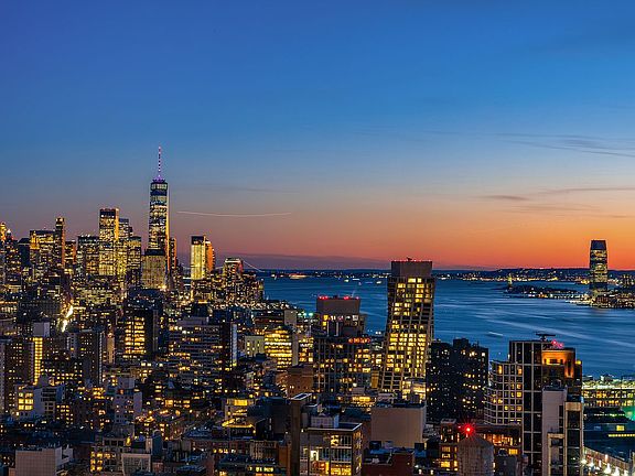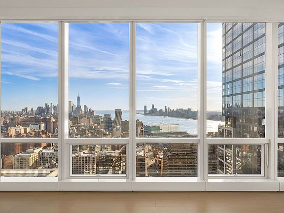 Details: 10'11 Floor-to-ceiling windows featuring incredible vistas of the Hudson River and Downtown Manhattan; wide-plank white-oak wood floors throughout, integrated motorized shades pre-installed.