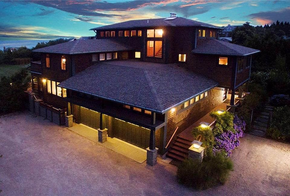 Open views of Narragansett Bay from Newport's Castle Hill to the ocean from this exquisitely appointed home with 5300 square feet of space on three dynamic levels. The views take in a variety of spectacular yachting from the start of the Bermuda Race to the Maxi yachts parade and the arrival of the Tall Ships. Dynamic outdoor features are perfectly married to the elegant architecture that is classic in look and sophisticated in concept. It is a house designed for roomy family living supported by the efficiency of "green" engineering. Non-formaldehyde building materials and "green Seal" insulation are features of environmental sustainability. A large capacity generator, an underground propane fuel tank, and two underground cisterns (capturing rainwater) for irrigated gardens. Two wood burning Artistic fireplaces on the first floor, one in the living room and one in the dining/garden room. The Owner's Suite has 2 beautifully appointed bathrooms plus a separate dressing room with built-in closets and storage. There are 2 additional ensuite bedrooms on the second floor The third floor bedroom/observation room has commanding views in 4 directions. Designed as a perfect guest suite, there is also a kitchenette and a tiled bath.A pebble stone driveway and parking area are nestled behind privacy hedges and custom fence. Nearly an acre of beautifully designed gardens and mature landscaping providing complete sanctuary. A truly extraordinary home with stunning finishes and details.
