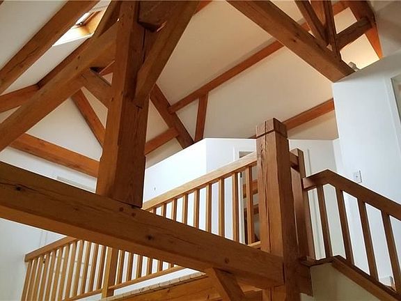 Timber frame exterior shell by New Energy Works. 1.9 acre private lot. 3 car garage. Unfinished bonus room could be additional bedroom or a fabulous art studio or playroom! New vinyl siding 2015. New windows 2015. Furnace and central a/c replaced 2013. New hickory hardwood floors in 2013. New roof 2008. Washer and dryer hook ups in the basement and future hook ups in the bonus room on the second floor.