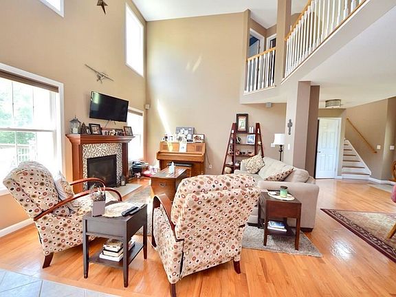 SUNDAY OPEN HOUSE MOVED TO THIS SATURDAY FROM 11 TO 1. This fabulous contemporary situated on nearly 1.5 acres is just what you have been waiting for! You can expect to be greeted with soaring ceilings, yet a warm & cozy atmosphere, starting with the large dining room that is open to living room with cozy gas fireplace & large granite kitchen with stainless appliances. Kitchen with dining area leads to large deck overlooking private wooded grounds. Large master bedroom ensuite with generous bath, including fully tiled shower, jetted tub & spacious walk in closet. Brand new carpeting throughout all bedrooms. Open & airy floor plan includes open 2nd floor balcony overlooking living room/kitchen. Finished basement with full walkout & storage areas includes (2) large bonus rooms, could be used as teen apartment, man cave, additional bedroom, playroom, the possibilities are endless! Large newer shed for all your outdoor necessities,Newer NG furnace,New septic in 2015. MAKE YOUR APPOINTMENT!