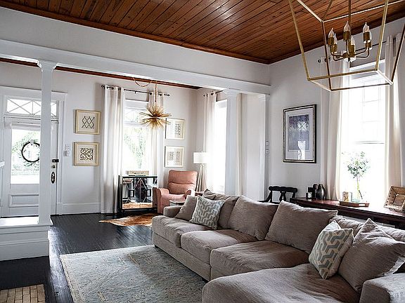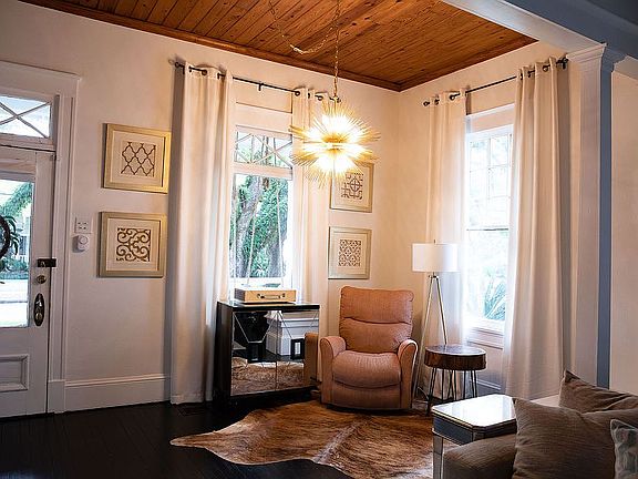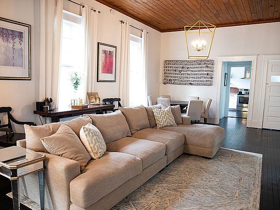 Beautifully remodeled home in the heart of midtown Mobile. This home offers an inviting front porch, natural light-filled living/dining area with original windows, and updated kitchen and baths. Living and dining area with 11’ ceilings, modern fixtures, and original wood ceiling. Kitchen with marble countertops, stainless steel appliances, and plenty of cabinetry. Primary bedroom with walk in closet and updated bath with walk in shower. Two additional bedrooms with 11’ ceilings and guest bath. Laundry with stacked washer/dryer and stairs leading to large walk-in attic with unfinished upstairs room. Fenced backyard with deck, storage shed, and a very productive Satsuma fruit tree. Tankless water heater. Termite contract with Lewis Pest Control.