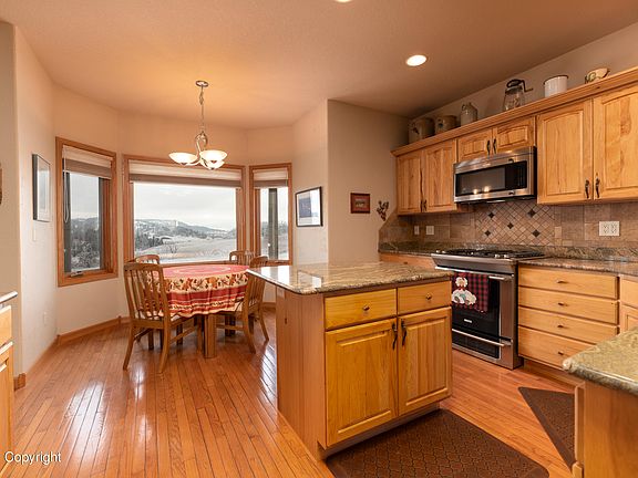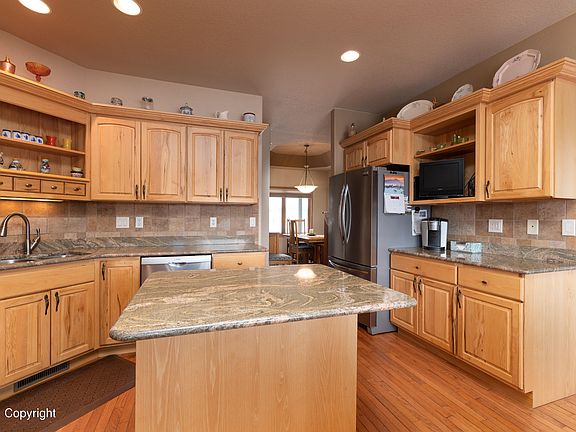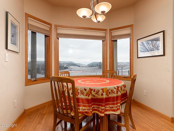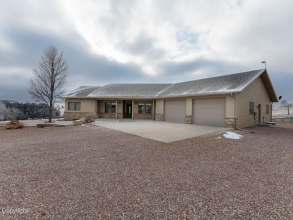 Located minutes from Belle Fourche and Spearfish. This 3 bedroom plus office, 2 bathroom home resting on 12.64 acres has breathtaking viewsfrom every room. The single level home has 2247 sq ft. with oversized attached garage. The kitchen features granite counter tops, stainlessappliances, including a gas stove/electric oven, center island is plumbed for a sink, hickory cabinets, a breakfast nook, and large pantry. Themaster suite has walk-in closets, tray ceiling, double vanity, and jetted tub. A gas fireplace in the living room sets the ambiance and the Frenchdoors to the deck provide wonderful views. Relax on the new covered Trex deck or on the large paver block patio. The large fenced yard islandscaped and has a garden area. The laundry room has access to a large crawl space and wine ce
