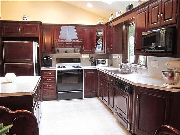 MOVE-IN CONDITION FOR THIS PRISTINE SPLIT LEVEL HOME LOCATED ON CUL-DE-SAC. LR WITH OPEN FLOOR PLAN, KITCHEN & DA W/VAULTED CEILING AND SKY LIGHT. CUSTOM KITCHEN CABINETS IN CHERRYWOOD STAIN AND BREAKFAST ISLAND. UPDATED BATH WITH CERAMIC TILE FLOOR AND TUB SURROUND. ROOF REPLACED '01, NEW GARAGE DOORS '07, REPLACEMENTS WINDOWS THRUOUT. HARDWOOD FLOORS UNDER CARPET IN LR AND IN BEDROOMS. LARGE FAMRM W/COAL STOVE, LOTS OF NATURAL LIGHTING. ENCLOSED PORCH OVERLOOKS PRIVATE LEVEL YARD. EXTERIOR POWER WASHED. BEAUTIFUL LANDSCAPE-PERENNIAL GARDENS.