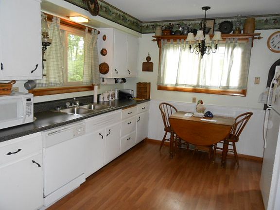 This home has a full basement, 3 bedrooms, 1 1/2 baths, vinyl windows, beautiful hardwood flooring in some rooms, brick & vinyl exterior siding plus an attached garage. Sliding doors in dining room lead to the patio. The lot backs up to the woods and there are No Backyard Neighbors. Located on a deadend street.