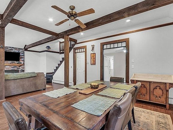 - Features: Ceiling Fan(s), Beamed Ceilings, Flooring - Wood