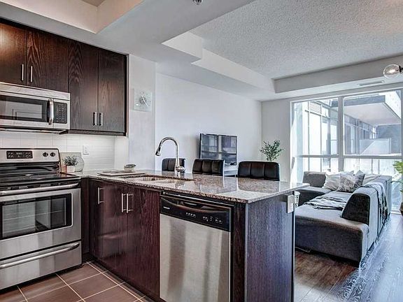 Bright Modern Unit Perfect For First Time Buyers/Investors! Spacious One Bedroom Oasis Boast An Open Concept Living/Dining With Floor To Ceiling Windows, 9" Ceiling, Stainless Steel Kitchen Appliances, Granite Counter, Breakfast Bar, Large Master W/Walk-Out To A Sun-Filled Balcony Overlooking A Courtyard! Amenities Include: Concierge/Security, Party Room, Gym, Theater, Guest Suites, Outdoor Terrace, Etc! Steps To Shops, Easy Access To Hwy, Ttc, School, Etc!