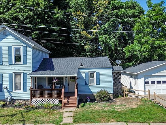 New price! Public open house Saturday 10/19, 10-2 and Sunday 10/19, 1-3. Welcome HOME and to the wonderful village of Phoenix. Located within walking distance to schools, the library, restaurants, the water and much more. Covered front porch greets you as you arrive. Double wide driveway leads to large detached two-car garage. Side porch offers entry into the home off the driveway and leads into the first-floor laundry area. If you step inside the front door from the covered porch, you'll enter into a HUGE eat-in kitchen with tiled floor and stainless gas range and dishwasher. Off the kitchen there is a large living area with gas fireplace and hardwood floors. Bonus room off the back of the living room could be great office, den or potential additional bedroom. Off the other side of the kitchen is the first-floor primary bedroom which has direct access to the newly updated full bathroom. The bedroom also features sliding glass door that leads to private rear yard. The yard has just been cleaned up and fresh hydroseed goes down 8/14. There are some other small projects you may notice in the pictures that might have been addressed by the time you arrive such as some touch up paint and trim work. There is a second full bathroom on the first floor in addition to the laundry. Upstairs there are two additional bedrooms. Recent improvements include roof on the home and the garage, new windows, updated bathroom and some new flooring. There is central air and the furnace and central air unit are just ten years young. The water heater is just two years young. No showings prior to Friday, 8/15 @ 8AM.