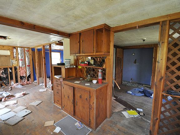 This fixer upper seems to have good bones and resides on a very private lot. House has been stripped of some plumbing and electric but from what is visible, frame and floor seem to be fairly solid. There is a second home site with infrastructure in the front of the property with a single wide that needs to deposed of. Unrestricted property so a mobile home would be allowed. Property is being sold 'as is".