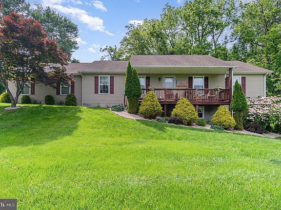 This spacious 4 Bedroom, 3 Bathroom Rancher with 2700 finished sq. ft. is waiting for you! Generous sized rooms throughout- most with beautiful hardwood floors! Primary suite with attached bath. Large kitchen with gas oven/range, breakfast bar, plenty of table space, & pantry. Lower Level features an efficiency kitchen (that can easily be converted to a full 2nd kitchen), full bathroom with tile floor, bedroom with large walk in closet, family/dining room, laundry room, & unfinished room for storage. Whether you are looking for an in-law suite, great entertaining area, or separate living quarters- this basement is for you! Attached 2 car garage and paved, level driveway. House sits beautifully on a 1 acre lot, surrounded by trees for added privacy. Beautiful landscaping. Whole house generator, security system, & shed are also included! Great location near the PA/MD line for easy commuting.
