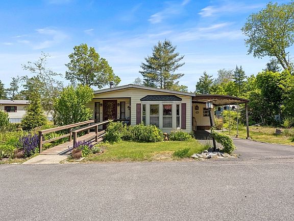 Located on a desirable corner lot in the over 55 community of Cranberry Village—a resident-owned community—this oversized 3-bedroom, 2-bath mobile home offers approximately 1,352 sq ft of versatile living space. Step into a bright open floor plan that seamlessly connects the kitchen & dining area, ideal for everyday living & entertaining. The fireplaced living room adds warmth and character, while the three-season porch provides a cozy spot to relax and enjoy the beautifully landscaped perennial gardens that surround the home. The primary bedroom includes a private full bath, and there’s a separate laundry/utility room for added convenience. Outside, you'll find a shed for extra storage and a carport (currently in need of repair).While the home offers solid bones and an attractive layout, it needs updating throughout, presenting a great opportunity to add your personal touches and build equity. Don’t miss this chance to own in Cranberry Village—where affordability meets potential.