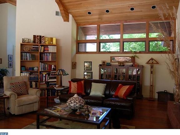 4 fireplaces, path in backyard to the Recreation area trail and tupelhocken Creek, cedar, mahoghany, and cherry wood throughout, soaring ceilings, floor to ceiling glass with southern exposure and deck looking into woods and toward the Tully