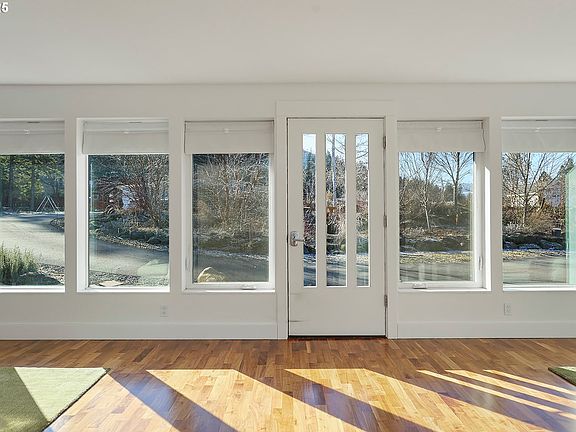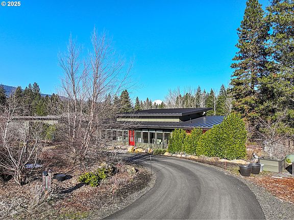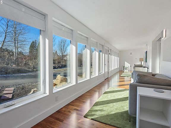 This stunning modern home on 2.65 acres offers an exceptional blend of style, space, and functionality. With soaring ceilings and expansive windows, the three-bedroom, three-bathroom home is flooded with natural light. As you enter, a beautifully designed sunroom welcomes you, which is strategically placed to maximize natural light and create a warm, inviting atmosphere. The gourmet kitchen is a chef’s dream, featuring high-end appliances, plenty of workspace, and a walk-in pantry with a rolling ladder. New engineered walnut Kahrs hardwood flooring runs throughout with radiant floor heat. The primary bathroom offers a luxurious retreat with a heated towel bar for added comfort. Fresh interior paint enhances the home’s bright and modern feel. A spacious deck extends the living area outdoors, perfect for entertaining. The finished daylight basement includes a separate entrance, a full bathroom, and radiant floor heating—ideal for extra living space. Outside, a paved circular driveway leads to the detached, oversized four-car tandem garage, also featuring radiant floor heating, a workshop, a full bathroom, and is wired for an electric car charger—offering excellent potential for ADU conversion. Additional storage space is available beneath the garage. The beautifully landscaped property features an expansive garden with raised beds, creating a serene and functional outdoor oasis. A truly unique property with endless possibilities!