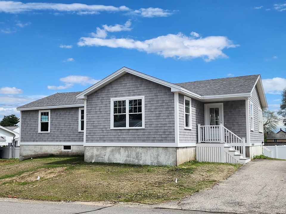• Exterior features: Architecture Style: Ranch Rambler, Cathedral Ceiling(s), Ceiling Fan(s), Deck, Dining Area, Driveway, Heating system: Hot Air, Laundry - 1st Floor, Level, Lot Features: Level, Paved, Roof Type: Shake Shingle