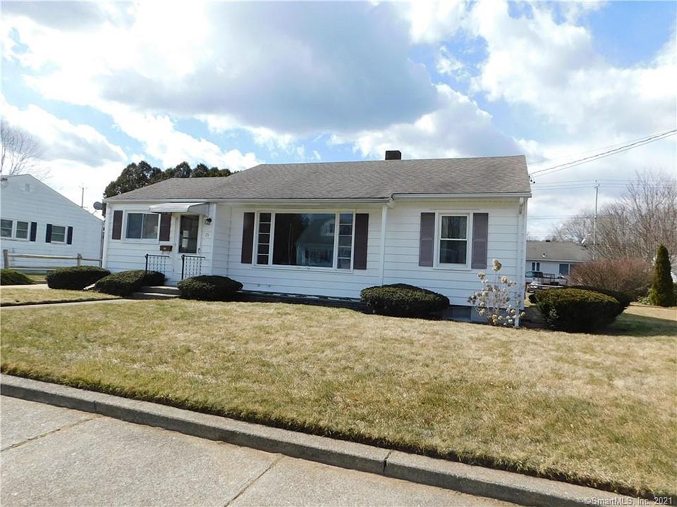 Charming two bedroom ranch with remodeled bathroom and hardwood floors located in a quiet neighborhood close to shopping and 395. Large eat-in kitchen, living room with bay window plus additional bonus room, full basement. Spacious yard with custom firepit, two car garage, private driveway. Truly move-in ready!
