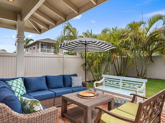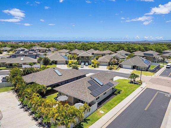 This Single Level 3 Bedroom/2 Bath Highly Desirable Floor Plan "Hapuna/P1" with Central A/C home sits perfectly on a corner lot in the premier master planned community of "The Parkways at Maui Lani". The newly developed neighborhood fronts the Maui Lani Dunes golf course and is conveniently located within close proximity to some of Maui's best parks and the award winning Pomaika'i Elementary School. Enter to a bright and airy front entryway, which flows seamlessly into the open and inviting main living area. The spacious backyard offers a covered lanai for shady relaxation and a built extension perfect for entertaining. The lush 6,142 square foot lot has been professionally landscaped and lined with Areca palms for privacy as well as a variety of beautiful plants surrounding the home for a tropical feel. This home was built with quality and style by Town Island Homes. 9' ceilings, covered front lanai, walk-in closets and the abundant use of windows throughout provide great natural lighting and depth to the home. Home features Corian counter tops, ceramic tile and laminate flooring throughout, custom window treatments, and a quality Central AC system. Additional bonus features include interior laundry room, full insulation, Solar hot water heater, leased photovoltaic system and finished garage. Contact your favorite Realtor today to find out more about this quintessential Kahului property.