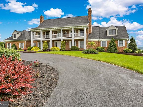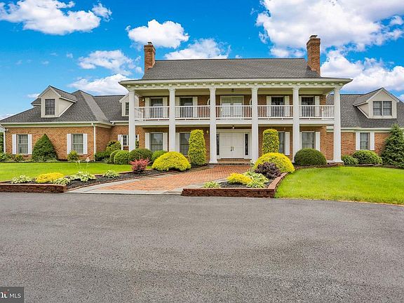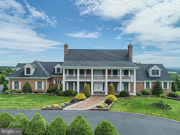 This Deysher built extraordinary 11-acre estate offers seclusion and beautiful views, yet it is still close to major roads and highways. The elegant 6100 sq. ft brick home is a center 2-story colonial with two one story wings on either side. Begin with the circular driveway and the grand exterior front with pillars supporting an upper porch over a low front patio. The double leaded glass front doors open to a two story foyer hall that features a stately curved staircase to the second floor. At the top of the steps is a sitting area and entry to the porch allowing incredible views. Most of the woodwork in the home has a dark rich stain and the stairs all have carpet runners exposing the beautiful wood. The formal dining room has wainscoting, crown molding, hardwood floors and leaded glass French doors. Step down into the lovely formal living room. The family room, although huge is very warm and welcoming. There is a bar area with detailed cabinetry on the right as you enter it. The family room is dominated by a floor to ceiling stone fireplace with exposed beams on the cathedral ceiling. There is gorgeous wide pegged flooring and a built-in bookcase. Two sets of French doors lead to the large rear deck. The family room opens to a spacious kitchen and a casual dining area which looks out to the back deck and yard. Food preparation is a joy as there is an abundance of storage in the walnut cabinets, lots of Corian counter tops, an island and quality appliances. A bar with stools adds extra seating. A small office, perfect for your laptop and paperwork, is just off the kitchen. The first-floor master bedroom suite has a sitting area and his and her closets. The tiled master bathroom with the jetted tub, double sinks and stall shower is beautifully appointed. A staircase from this room leads to an office that has custom built-ins and a gorgeous view to the outside. Upstairs you will find four bedrooms, all very nicely sized and with loads of closet