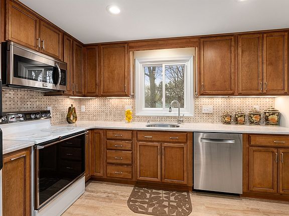 This spacious home, set in a desirable neighborhood, is ideal for multi-generational living! Thoughtfully renovated & expanded, it features a two-story addition (2004), including a luxurious primary bedroom suite with a vaulted ceiling, a spa-like en-suite bath with a jetted tub, & a walk-in closet. Down the hall there are 3 additional bedrooms including one with an en-suite bath. A beautifully updated kitchen, renovated in (2014), opens to a large living room with a cozy fireplace & a dining room with direct access to the rear deck, creating the perfect flow for entertaining. The lower level features a private in-law apartment with a family room with fireplace, a kitchen, a spacious additional room with a walk-in closet, & a full bath offering lots of possibilities! A newly updated laundry & mudroom, refreshed in (2023) with new flooring, & newer appliances connects conveniently to the garage. Close to White City Shopping Center, supermarkets, restaurants & Shops!
