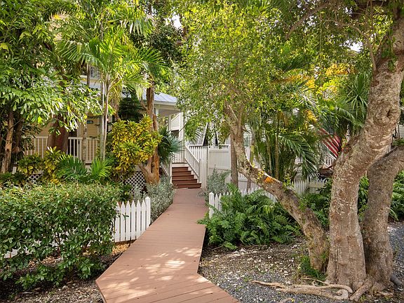 Step into a world of island charm & relaxing comfort, nestled within the exclusive Key West Golf Club. Ease of parking & the lagoon-shaped community pool is just across the way. This beautiful 3-bedroom/2-bathroom townhome w/larger lot welcomes you w/an extended boardwalk-style walkway, creating a dramatic, private arrival experience framed by lush tropical landscaping. Inside, you'll find a freshly painted interior and thoughtful blend of upgraded ceramic tile w/intricate inset designs on both levels, complemented by Berber carpet on the stairs. The main-level living space flows effortlessly to wider than the norm screened rear deck w/side wrap veranda, offering a total of 510 sq. ft. of outdoor relaxation. The heart of the home is the kitchen, featuring granite countertops & built-in cabinetry beneath the breakfast bar. Convenient layout perfect for entertaining. An enclosed main-level flex room w/double doors provides privacy and versatility, ideal for a guest suite, home office, or studio-style living. This room is paired w/convenient adjacent full bathroom and stack washer/dryer, ensuring ease & functionality. Upstairs, two spacious bedrooms (20' in width) offer serene views, including glimpses of the #2 fairway. The primary bedroom has an additional walk-in storage closet, perfect for holiday decorations, linen closet or additional clothing closet! The home's new AC system, updated landscaping w/multi-colored stone and new plantings, trickle irrigation, and partial new gutters ensure a move-in-ready experience. Residents of the Key West Golf Club enjoy resort-style amenities, including 2 heated pools (1 w/waterfall feature), a Clubhouse Building w/HOA Office-Meeting Room-Fitness Center, and secure gated access. Butterfly garden, miles of beautiful, lushly landscaped streets, perfect for strolling or vigorous walking/running, are just a few of the features! Minutes from Old Town Key West, this home combines privacy, convenience & the best of island living